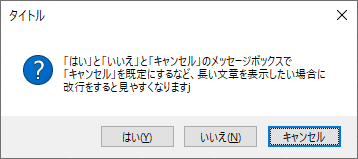 "改行をすると見やすくなりますj", vbQuestion + vbYesNoCancel + vbDefaultButton3, "タイトル")